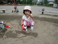 昨日もぐちゃんは、まだまだ先の予定だった公園デビューをしました!実家にもぐちゃんを預けようと思ったのですが、出かけていたため一緒に連れて行きました。公園はいつもより人も少なく涼しくて、もぐちゃんを連れて行くにはちょうど良い日でした。まるちゃんと同じ年頃の子はいなく小学生達が遊んでいて、まるちゃんは公園につくと真っ先にお兄さん達がいる砂場に行き、遊んでもらっていました^^泥だらけになりながらお兄さん達に遊んでもらい、まるちゃんすごく喜んでいて楽しそうでしたお昼ご飯はお寿司屋さんに行ってきました~まるちゃんお寿司デビューです!お子様プレートを頼んで、マグロやイクラ、たまご、デザートなどいろいろ入っていましたが、イクラを少しと唐揚げと納豆巻きだけ食べました。あとは全部私がパクリw納豆巻きだけでも食べてくれて良かった^^