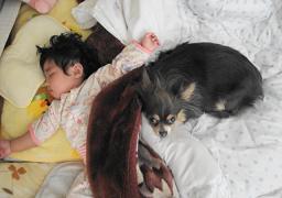 今日は、ほとんど寝ていないからものすごく眠いです・・・ウトウトしています・・・グシグシ( p_・)~゚☆昨日の夕飯☆・小松菜のおかゆ・シチューうちには、2歳になるチワワ君がいます。チワワの体重は、1~3kgが標準の体重だけど、うちのチワワ君は、4kg超えている子犬の時に、「この子は骨太だから大きくなるでしょう」みたいな事をお医者さんに言われて、大きくなったら本当に大きくなってしまった・・・( ̄ロ ̄|||)私は、ちいさ~いチワワを想像していたのですが・・・何かちがう・・・顔はチワワだけど、後姿は何犬?????でも、チワワ君は可愛いから大好きです癒されます今日の朝、起きて隣に寝ている娘を見たら、逆さまになって布団からでてる~~~しかも、チワワ君と一緒に寝てる~~~~~!!!とっても仲の良いまるちゃんとチワワ君です♪(o^∇^o)☆朝食☆・BFのレンジで作る蒸しパン・きな粉ヨーグルトまるちゃんは蒸しパンが大好きです♪