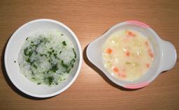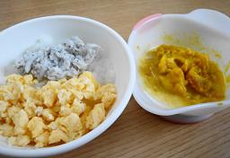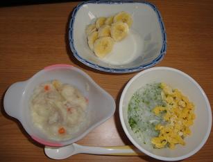 今日のまるちゃんは、7時ちょい前に起きました。いつもは8時に起きるのに今日は早い・・・☆朝食☆・チーズトースト・きな粉ヨーグルト今日のトーストはちょっと焼きすぎて食べにくそうだった。テレビを見て手をパチパチしながら食べてるまるちゃん眠かったのか、朝食を食べたらまたすぐ寝てしまった大好きな「いないいないばぁ」が見れなかったね。☆昼食☆・シーチキンとおかゆ・卵巻き (BFの「鶏レバーと緑黄色野菜」を溶いて中にぬっている)☆夕食☆・BFの「野菜ピラフのもと」を入れたおかゆ・豆腐とブロッコリーの青海苔あんかけ・バナナ青海苔をちょっといれすぎてしまった・・・夜中に何回も起きて熟睡をしていないから、最近はとても眠いです
