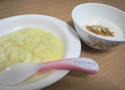 去年の春に生まれてすくすくと元気に育っているまるちゃん。笑顔がとってもカワイイ活発なまるちゃん9ヶ月になる少し前からつかまり立ちができるようになり、毎日いたずらばかり;;怒られることをわかっていて、ニコニコしながら私を見てわざとやる。。。う~ん、おちょくられている・・・今日の朝食は、チーズトーストとミルク。パンはいつもミルクに浸さないと食べなかったまるちゃんだったが、今日はチーズトーストを全部たべてくれた!ミルクに浸さないでも食べれるようになったから嬉しい☆昼食☆・青海苔と卵のおかゆ・シチュー・バナナヨーグルトシチューは少し残したけど、後は全部食べてくれた^^☆夕食☆・納豆としらすと青海苔のおかゆ・大根とブロッコリーの味噌汁大根は前からあまり好きではないみたいで食べなかったが、今回も味噌汁に大根が入ってたせいか二口だけしか食べず残した・・・