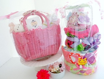 おむつケーキ プチオーダー おまかせ出産祝いおむつケーキ girl3900プチオーダーのオムツケーキ新作登場!ロンパース、ソックスなどは選べません。ヘアクリップが選べます。詳しくは HP にて。おまかせだからお買い得!3900円(送料別)です。