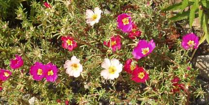 近所のアチコチで咲いているマツバボタン。スベリユリ科の1年草なのだそうです。休日の朝、近所を散歩すると、朝日をいっぱいに浴びて元気に咲いています。マツバボタンはブラジル出身なのだそうで、カラカラに乾いた地面でも平気みたいです。う~ん。 私も見習いたい。草丈は10cm程度の可愛い花で、品種改良により、一重や八重の花があるそうです。道ばたに、色とりどり、直径4~5cmの花を咲かせ、心を和ませてくれます。 ★英語サイトも運営しています。やり直し英語にご興味がある方、いかがですか? 英語学習カフェ ~無料英会話教材の紹介など ~姉妹サイト 「気楽」に「楽しく」英語に取り組むための情報がいっぱいです。