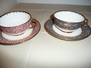 今日、用事が長くなってしまい帰りが遅くなってしまい、買い物袋を両手に提げて帰宅したところ、ロビーにいたヤームさん(守衛さん)に声を掛けられ箱を渡されました。最初何かさっぱりわからなかったのですが、見てビックリ。以前お友達とオーダーしに出掛けたベンジャロンのお店から商品が届けられていました。あのぉ・・・予定では明日の17時なのですが・・・。なぜ今日なんでしょう??まあヤームさんが預かってくれていたからよかったけど・・・。で、届いた商品ですが、光ってしまってあまりよく撮れなかったのですがご紹介。お見せすることはできませんが、カップの裏にはタイ文字で名前が書いてあります。カップの中とソーサーの絵柄はこちらです。いくら頑張ってもこれ以上思ったような写真が撮れなかった私(-_-;)実物は結構かわいいですよ♪このティーカップ、実際に使うかどうかはわかりません。ちょっともったいないから飾っておくかも・・・。