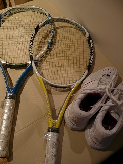 先日、新しいラケットとシューズを買いました。これは日本でも続けるために買ったもの。サーミーのラケットも買っちゃいました♪青い方が私のラケットで黄色はサーミーのラケット。コーチに聞いてみたらサーミーのラケットは試合で使うようなラケットらしいですパワーのある人が使うみたいだから、サーミーにはいいかも。ラケットを買うときにいた店員さんは、コーチのお友達の息子さん。英語が一切使えないから、もしかしてタイ語で「プロモデル」とか言っていたのかも・・・。こういう買い物って難しいですね。シューズは別のお店で買ってこちらは英語が通じたので、このシューズ以外の物も含めていろいろ教えてもらいました。 ラケットは、使ってみたけどちょっと今までと違うかなあ・・・。前のラケットの方が使いやすいかも。こちらでテニスが出来るのもあとわずか。両方のラケットを使って日本に帰るまでにもうちょっと上手になりたいなあ~。