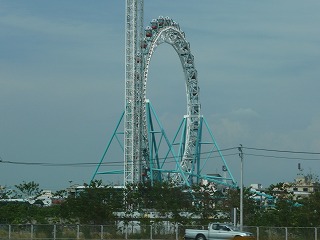 ドゥシッタニホテルから帰った私たちは、ちょっと引越しの準備をして、その後おめかししてお出かけ。この日は18時からあるサーミーのスタッフの結婚式に行くことになったのです\(^o^)/タイの結婚式は初めて。とっても楽しみでした。ただ、場所が・・・。ロップリー 18時からロップリーって・・・帰りは何時よ?ちなみにロップリーはバンコクから3時間程度の場所にあり、12月に咲くひまわりが有名なところです。我が家を出たのは15時。車は順調に流れ、どんどん風景が変わっていきます。途中観覧車が見えてビックリ遊園地のようでした。タイにも遊園地があるとは聞いていたけど、ここのことなのかなあ?よくある風景だけど、撮ってしまいました。日本じゃ道路交通法違反でしょう。タイではマイペンライ。人が荷台に乗って高速道路を走ってもお咎めなしです。およそ2時間でロップリーへ到着。ここからは新郎くんが書いてくれた地図が頼り。一応、新郎くんはうちのドライバーさんに地図を見せながら話をしてくれたので、大丈夫だと思うのですが・・・。私たち、この地図が読めないので(タイ文字ですからね)ドライバーさん頼みです。新郎くん「迷ったらいつでも電話して」と言っていたのですが、新郎よ・・・電話に出る暇があるのか??地図どおりに行くと、途中で大仏さまが見えました。上手く撮れなかったけどのせちゃいます。このあたりは何もなく、どこまでも平原が続く北海道のような風景です。富良野あたりに似てます。 さらに走っていると、この地は軍隊の基地があるようで、そういった建物を見かけました。そのあたりからドライバーさん、ちょっと怪しい。地図にはロータリーが書いてあったりして、何となくこのロータリーはここかな?と思ったりしたのですが、建物名などタイ文字なので確認はできません。そうしているうちにドライバーさん、ホントに怪しくて「オクサン、マイカオチャイ」(わからない)と・・・。新郎くんの地図はかなりきちんと書かれているのだけど、まっすぐなのかちょっと斜めなのか微妙なところがあり、そこでドライバーさんわからなくなったよう。3人であーだこーだ言いながらとりあえず、こっちだろう?という道をひたすら行きます。でも、行けども行けども田舎道。結婚式場なんてみあたりません。時間も迫っているので新郎くんに電話してみることにしました。普通出ないと思うんだけど、新郎くん出ちゃいました~\(^o^)/すぐにドライバーさんに代わってもらって確認すると、この道であっていると。ホッとしましたが、信じられない気持ちもありました。だって地図だと結構近いんだけど・・・。するとサーミーが一言。「ここにね、20とか30とか書いてあるのね、これってもしかしたら20分とか30キロとかの省略かも・・・」私が橋のマークだと思っていたところにどうやら数字が書かれていたのです。分・キロの省略だとしたら相当遠いですその時点でもう18時になりました。いわゆる遅刻ですが、タイだったらマイペンライでしょう。焦る気持ちもありましたが、もう諦めです。ロップリーに入ってから1時間。我が家からおよそ3時間で無事なんとか結婚式場へ到着。新郎新婦が出迎えています。どうやら、タイのスタイルは最初に新郎新婦が出迎えて全てのお客様と一緒に写真を撮るようです。そしてお祝いを招待状が入っていた袋に入れて、箱に入れるとドラジェを先にもらいます。会場内はこんな感じ。体育館?公民館?のような感じで窓がなく室内というか外ですね、これは。日本人は私たちともう1人会社の方の3人。男性2人は当然ですがスーツです。だって室内だと思うし、結婚式だもの、それなりの格好は必要でしょう、上司だし・・・。ところが、タイの結婚式というものは何でもいいみたいで、ジーンズにシャツとかそういう感じの人もたくさんいたのです18時からだというのに、新郎新婦はまだお出迎え中。途中で、朝一番で行われた結婚式の様子が流されました。ちょっと見づらくてよくわからなかったけど、お坊さんの前でいろいろしてました。お坊さんの前なのに、衣装は洋装って・・・不思議だったけど最近のスタイルなのかもしれません。それが終わると今度は雇われた人なのかお友達なのかわかりませんが歌謡ショーの始まりです。この人から始まり6人くらい歌い続けてました。それが終わるとやっと新郎新婦の入場です。司会者から簡単に新郎新婦の紹介があり、ご両親もステージに上がって一言ご挨拶がありました。新郎くんは、ご両親に感謝の言葉を述べたようで(タイ語なのでわかりませんが)涙を流していました。その後ケーキ入刀がありました。タイのケーキなので当然バターです。この後、カットされたケーキを新郎新婦がご両親へ届けます。たまたま、新郎くんのご両親が私たちの席にいらしたので(私たち、一番いい席を用意されていました。)すぐ間近で感動的なシーンに立ち会うことができました。 新郎新婦は、