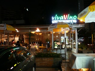 まだアップしていないレストランがいくつかあるので、ご紹介します。ここは、英語の先生が手ごろでおいしいと言うことで教えてくれたお店。スクムヴィットsoi22のグランドメルキュールスクムヴィットホテルの敷地内にあるレストラン「VivaVino」オーダーしたのはミックスサラダ、パルマハムピザと4種のチーズピザのハーフ&ハーフ。オーダーするときに先に飲み物をオーダーしました。私はジントニック、サーミーはスパークリングウォーターです。オーダーを取ったのはマネージャーらしきスーツの男性。ところが待てど暮らせどドリンクは来ないまま、パンが運ばれてきて料理まで運ばれてきました。パンの時点で聞くべきでしたが、気づくかな?と思ってしばらく黙っていたけどさすがにサラダが運ばれてきたときにスタッフに聞くと「確認する」と言われ、確認している間にピザがきちゃいました~(-_-;)その後に来たスタッフ「ごめんなさい、マネージャーオーダーを忘れたって。何を注文したの?」と・・・。呆れました。この日は、サッカープレミアリーグのビッグマッチ、マンチェスターユナイテッドとリバプールの試合があり、このレストランでも中継されてしました(タイ人、プレミアリーグ大好き)。仕事中でも平気でタイ人はサッカー中継を観ます。得点シーンなんて大騒ぎ!ガッツポーズもするし、ガッカリもします。多分、マネージャーはサッカーが気になったのでしょう。食べてる最中に謝りにきたからまあ、よしとしましょう。 英語の先生が言うには、ここはお料理はOKだけどデザートはあまり・・・とのこと。でも一応オーダーしてみました。定番ティラミスとストロベリーヨーグルトケーキ。お味は・・・食べられないことはないです。ティラミスは結構いいかも。でも大きさが2人分と言う気がしないでもありません。それと、ホイップクリームの上にある赤いもの。どう見てもチェリーでした。が・・・サーミーが一口食べてビックリ「ルークチュップ」でした。ルークチュップはタイのお菓子。この間タイ料理教室で作ってこちらでも紹介したので、覚えていらっしゃる方もいるのでは??最初タイで、アイスクリームにのせてあるチェリーを食べたとき、種がないことに驚きましたが、今回はそれを上回る驚きでした。ここだけタイ風にしなくてもねえ・・・。ここ、ホントにリーズナブルで一度行ってみる価値はあるかなと思います。旅行でバンコクに来て、グランドメルキュールスクムヴィットやその向かい側にあるクイーンズパークに宿泊する方には便利だし、お勧めです。