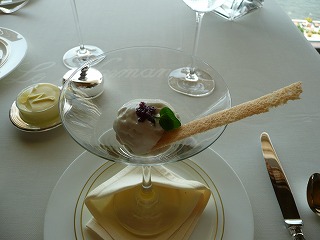 少し前の話ですが、やはり本帰国する同じアパートのお姉さんの希望で、オリエンタルホテルのアフタヌーンティーへ出掛けました。私は一度直実さんたちと行っているのですが、もう一度行きたいと思ったので楽しみでした。ところが・・・この日アフタヌーンティーの会場でもあるオーサードラウンジでシャネルのイベントが行われていて、アフタヌーンティーは中止以前お友達が予約なしでお出かけしたら結婚式の予定があって中止だったことがあり、直実さんとお出かけするときには予約をしました。予約といっても直実さんがお電話したら「予約はいらないよ」と言われたとか・・・。また別の友達も予約の電話をしたら「いらないよ」と言われたと。予約の電話というよりもオーサードラウンジが貸切かどうかの確認をするべきみたいです。オリエンタルホテルは他のホテルと違って12時からアフタヌーンティーを始めます。なのでこの日も12時に着いたので時間はランチタイム。どこへ行こうか迷った私たちは、同じオリエンタルホテルのフレンチレストラン「ノルマンディー」に行きました。こちらは、昨年私の誕生日に行ったお店。とても好きなお店の1つです。少し前なので内容は忘れてしまったものもありますが、画像をアップします。これが何だったのか忘れてしまったのですが、角切りのホタテが入った牡蠣風味のメレンゲにキャビアがのせてありました。海の味が強くて好き嫌いがわかれるだろうなあと思います。え?私?もちろん好きですよ私の選んだ前菜エスカルゴ。食べたことがなかったエスカルゴ。興味本位でオーダーしたのが失敗でした。エスカルゴといえばガーリックが必ずと言っていいほど入ってるそうで・・・かなりキツイ一品。一口食べてお姉さんに食べてもらいました(^_^;)お姉さんオーダーのカニ肉をエビで包んだもの。私もこれがよかったのですが、同じものを頼むのはつまらないと思ってエスカルゴにしたのですが・・・。お姉さんから半分もらえたので幸せ~♪メインはお姉さんがラム肉2つの部位のラム肉で2通りの調理法です。私はお魚にしたのですが、これまた失敗・・・。お魚の上にはまたまたガーリックが結局これも少し食べてお姉さんに渡しました。お姉さんからはラムを頂いてこれまた幸せ~♪デザートはワゴンにある5種類のケーキから2種選べます。お姉さんが言うには、以前こちらのワゴンから選べるケーキに制限がなかったそうです。でもこの景気ですからね、2種類に減ったよう。2人で重ならないよう4種類選びました。ティラミスともう1つ、忘れちゃいました・・・。イチゴのタルトとベリーとショコラのケーキ。こちらではケーキを選ぶと、スタッフさんがお絵かきをしてくれます。さらさらっとかわいらしく仕上げてくれるのが、嬉しいです。最後はプチフールまでもうおなかいっぱいだよ~お姉さんのお話だと、これももーっと量が多かったと。これ以上多くてどうするの?もうおなかいっぱいなんですが・・・。ノルマンディーはやっぱりバンコクのフレンチレストランの中で1,2位を争うお店だと思います。もう一度サーミーと最後に行きたいなあと思うけど、時間的に無理かなあ。 バンコクでの最後の晩餐はやっぱりここかしら?