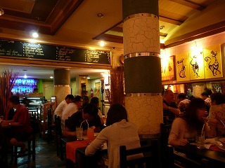 私の英語の先生がお勧めしていたイタリアンレストランがあります。ここは前から名前も評判も聞いていたのですがなぜか行く機会がありませんでした。名前はBIGMAMA安くておいしいお店です。ちょっと狭くて、ごちゃっとしているし、駐車場もないんだけど車は近くの水路横に停めておけばOKというかなりアバウトなお店。実際車は2時間近く停めていたけど全然平気でした。それに、うちが停めた時には少なかったのに帰る頃にはすごい数が停まっていました。 お店の中はにぎやかです。パン。これが素朴でおいしかった~。先生がお勧めしていたメニューはピザ(どれもおいしいらしい)とトムヤムクン風味のパスタに、ツナサラダ。デザートは温かいチョコレートケーキ。この日はツナサラダとパルマハムピザをオーダーしました。ツナはあまり好きじゃないんだけど、先生が「この2種類のドレッシングがおいしいから食べてみて」と言うので・・・。ドレッシングはどちらか1つではなく両方かけるのがお勧めと言われて、その前に1つずつ味見。1つずつでも十分おいしいです。でも、先生が言ったことを守って2種類混ぜてみると・・・いやいやおいしかったです。1種類ずつかけるなんてダメです。両方かけて混ぜないと!!他のサラダもこのドレッシングかな?と思ったのですが、他テーブルでドレッシングポットが3種類あるところもあったので、それぞれ違うのかなと思いました。パルマハムのピザ。とても大きくて運ばれてきたときには驚きました。パルマハムピザが大好きな私たち。値段と大きさとピザ生地、チーズとハムとの相性、どれを組み合わせてみてもいいと思います!リモンチェロが一番と思うけど、リモンチェロは値段も結構するし、今のところリモンチェロといい勝負です。おなかはほどよくいっぱいになってきたけど、やっぱりデザートは外せません。先生の選んだチョコレートケーキとトルコ風プリンをオーダーしたのですが、トルコ風プリンが品切れでチーズケーキにしました。気になるでしょ、トルコ風プリン。オーナーさんに聞いたら「今日はちょっと早く品切れになったみたい。いつもはあるんだけどねえ・・・」とのこと。次回、いつ行けるかわからないから食べてみたかったなあ。チーズケーキは昔なつかしのチーズケーキと言った感じで、甘さも控えめでした。チョコレートケーキは、フォンダンショコラが出てくるのかと思っていたのですが、違いました。スポンジをチョコシロップに浸けたようなケーキで、これが劇甘を想像させるのですが、そこまでは甘くないのです。こってり~という感じですが、結構するするっと入ってしまいました。一緒に紅茶とカプチーノをオーダーしてトータル770Bこの味、この値段、文句が言えません。どうしてもっと早く行かなかったんだろうなあ・・・。