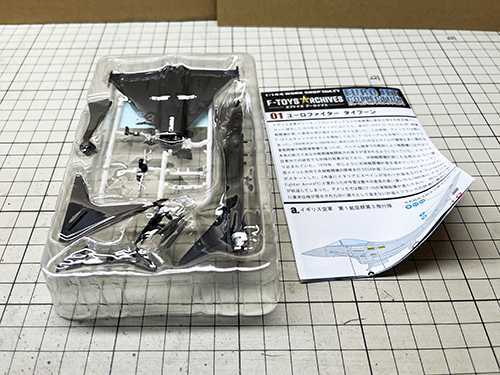 エフトイズ ユーロファイタータイフーン試作2号機 制作その2 です。今回は組み立て・スミ入れ・デカール貼りです。まずは機体の組み立て。胴体と主翼を合体続いてスミ入れ。使用したのは タミヤ スミ入れ塗料ダークグレー です。細かなパーツも。ノズルは スミ入れ塗料ブラック を使用。そしてデカール貼り。デカールの印刷が若干ズレているのがチット気になりますが、エフトイズのキットにはよくある事です。食玩ですが精度を上げてもらいた所ですね。贅沢でしょうか下面はこんな感じ。そして細かなパーツを取り付け。まずは脚周りを取り付け。続いて。パイロン等を取り付け。今回は以上です。