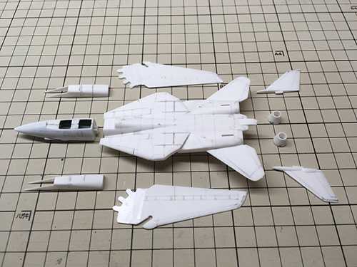 合わせ目部分のモールドを彫り直した後に、主要パーツの梨地を消す表面処理を行いました。