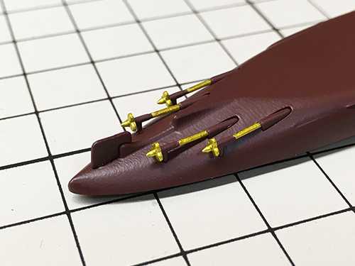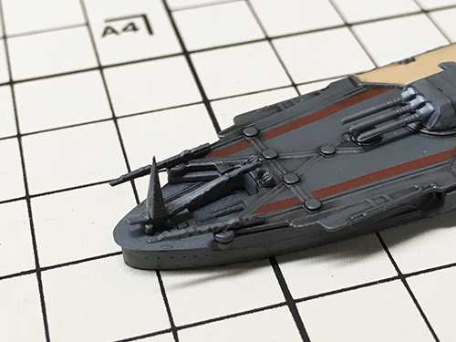甲板部にある主砲の台座等の突起物の境界が甲板色に浸食されていたので 軍艦色 でリタッチ。