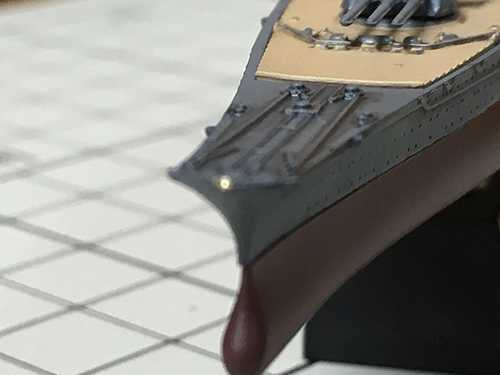 艦首の菊花紋章を 4アーティストマーカー ゴールド でチョンと塗りました。