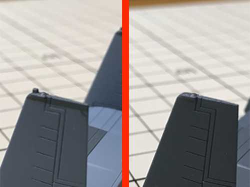 今回は細かいパーツを切り出して機体パーツと共にゲート処理&ゲート跡のリタッチを行いました。