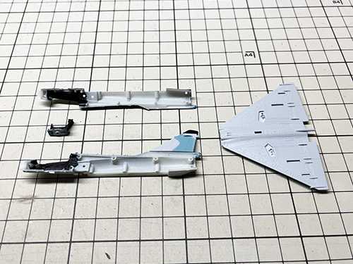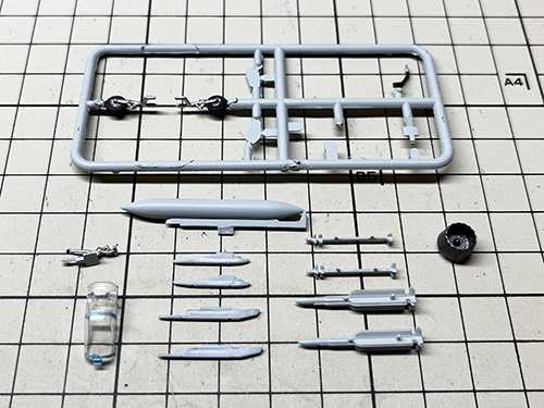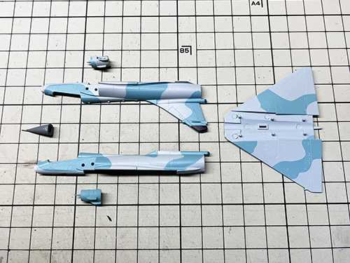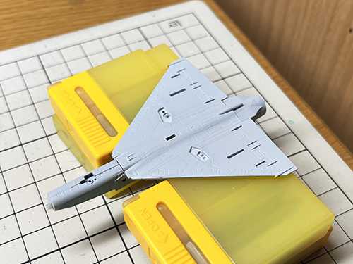 タンク・パイロン・ミサイル等のゲート跡と目立ったパーティングラインの処理跡を機体グレー色で塗装。