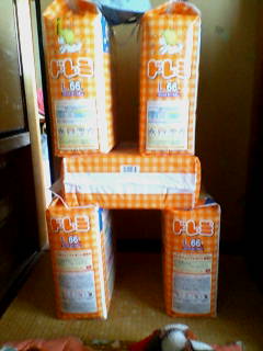 オムツ・・・買いだめしました。だって安売りだったんだもん。↓↓ちなみにLサイズ、66枚入りで980円でした。一枚あたり14.85円(^^♪ 布オムツと併用なのに買いすぎです(爆) 今日は私の中学の時の友達と集まりました。同級生の子で誕生日がKyleと3週間ちがいくらいの女の子も参加でした。というわけで私もKyleを連れて行きました。赤ちゃん同士遊ばせるのがかなり好きな私です。Kyleはいつものおしゃべりと笑顔で愛想を振りまいてました(^^♪ 早く帰ろうと思っていたのですが、抱っこしてたら寝ちゃったので、そのまま長居してしまいました。いつも9時までには寝るKyleなので、今日も例外なくぐっすり寝ました。あんまり遅い時間に外に連れ出すのは、私的には×なのですが、寝ていたので「まぁいっか!」って感じにしました。 規則正しい生活のリズムは崩さないようにがんばります! でも久々に友達に会えて楽しかった~(^^♪