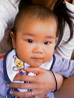 お久しぶりです~いつのまにか放置サイトになってますが、元気にやっています。Kyleもあと1週間で9ヶ月になります。まだ2回食なのですが、3回食になることを今からビビッています。仕事の合間におっぱいだけ~ってわけにはいかなくなりますね。しかも最近、離乳食作り&食べさせるのにかなり疲れてきています。こんなんで大丈夫なのか!? なんでも残さず食べるのですが、機嫌が悪いと叫びだすし、暴れだすし、エプロン取ろうとするし・・・(-_-;)でも、がんばるしかないですね。 つかまり立ちもかなり上達しました。ホイッって感じで軽々立てるようになりました。朝早くから寝ている私につかまり立ちして、めっちゃ揺すってくるし・・・はいはい、起きますよ~(/_;)って感じの私。 それから、最近は背中の汗疹がひどいです。お風呂でキレイに洗ったり、汗取りパッド入れたりはしてるのですが、なかなかよくなりません。何かいい方法はないでしょうか? 抱っこしてると私まで汗びっちょりになっちゃうし、気持ち悪い~(-_-;) こんな感じで近況報告でした。