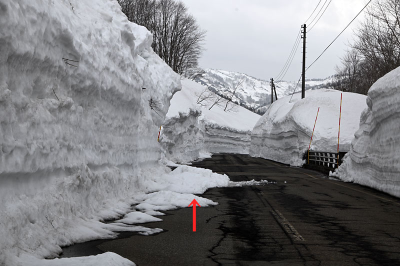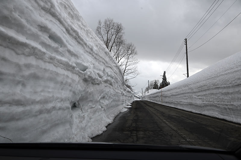 春の富山の立山さんの10m近く積もっている雪の回廊には程遠いですが、でもここから2kmも走ると民家があると思うとこの雪はすげぇと思います。