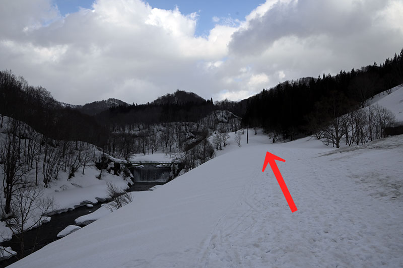 ↑雪の上に上がれるようにスロープが作られているのですが、矢印の方向に浅草岳という山への登山口があり、ここまでの道はこのために冬でも除雪されているようです、さすがに真冬にここに来たことはありませんが。