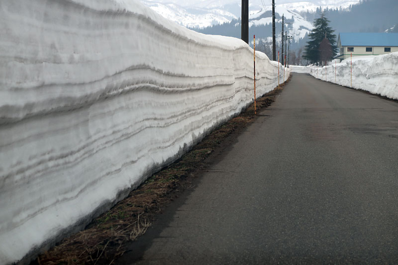 これは除雪の残りではなくて、雪の壁が気温が暖かくなったことにより崩れてきたものになります。