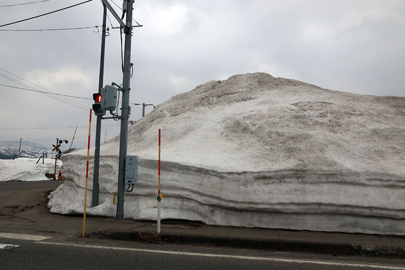 ↑町中では除雪で4mくらい積みあがった雪の山をいくつも見ることがありますが、ここでも雪の下には歩道も見えており雪融けを実感しております。