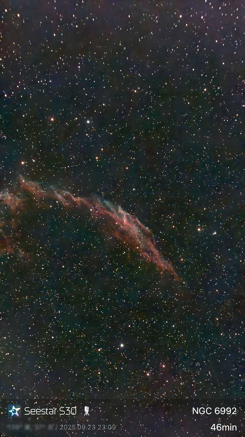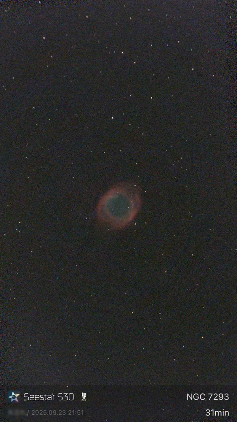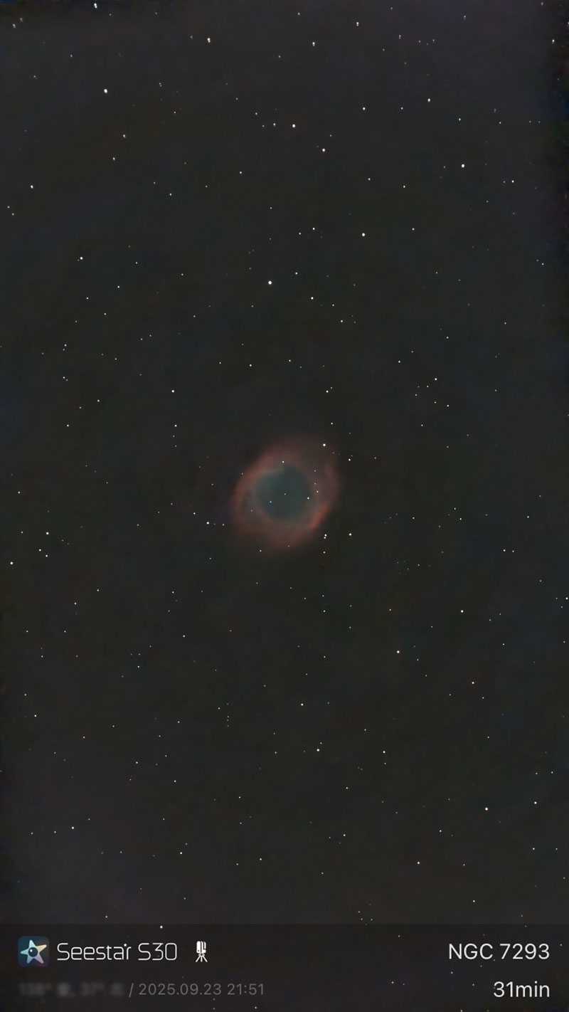 SeestarS30も長時間露出した方がきれいに写せるようですが、でも一眼カメラで写した場合のようにノイズがグンっと減る訳でもないようですので、ノーマルモードにて短時間で写したカットに自動画像補正を掛けた方がS30の使い方としては合っているかなと思うところが個人的な感想です。