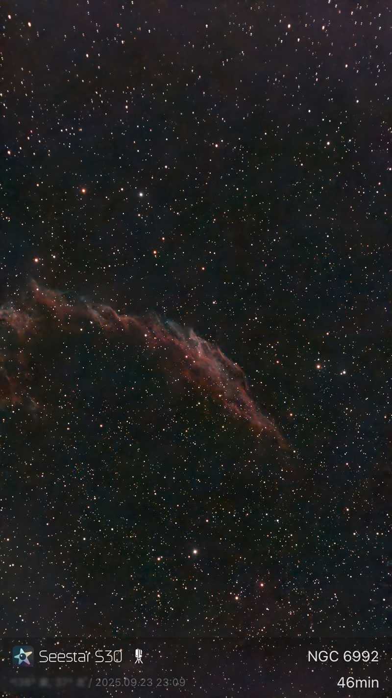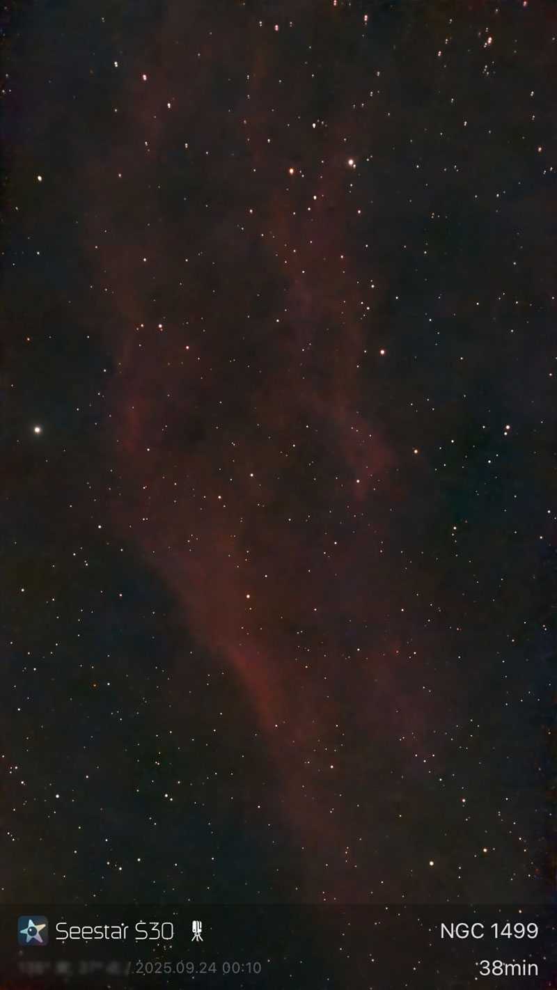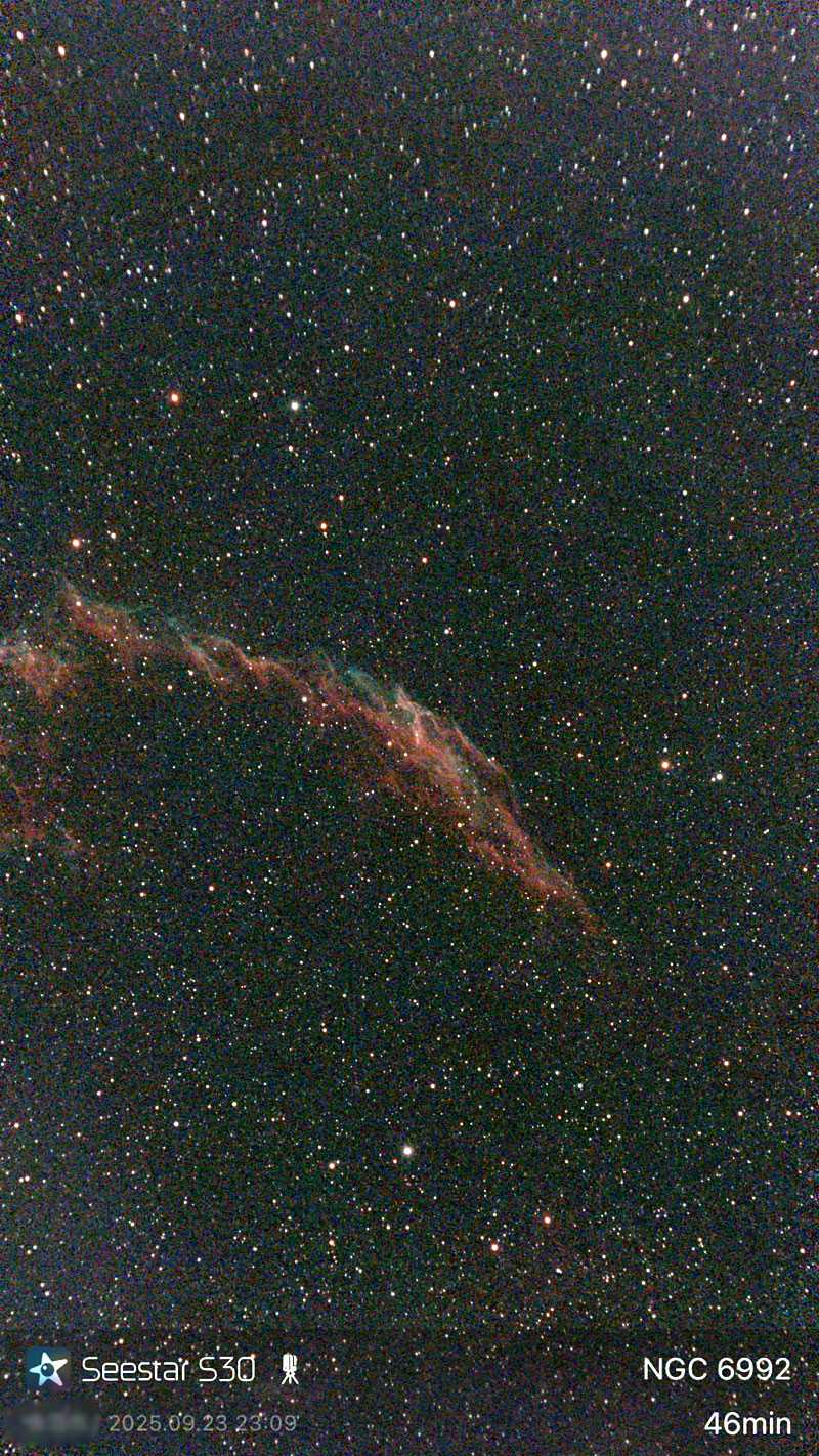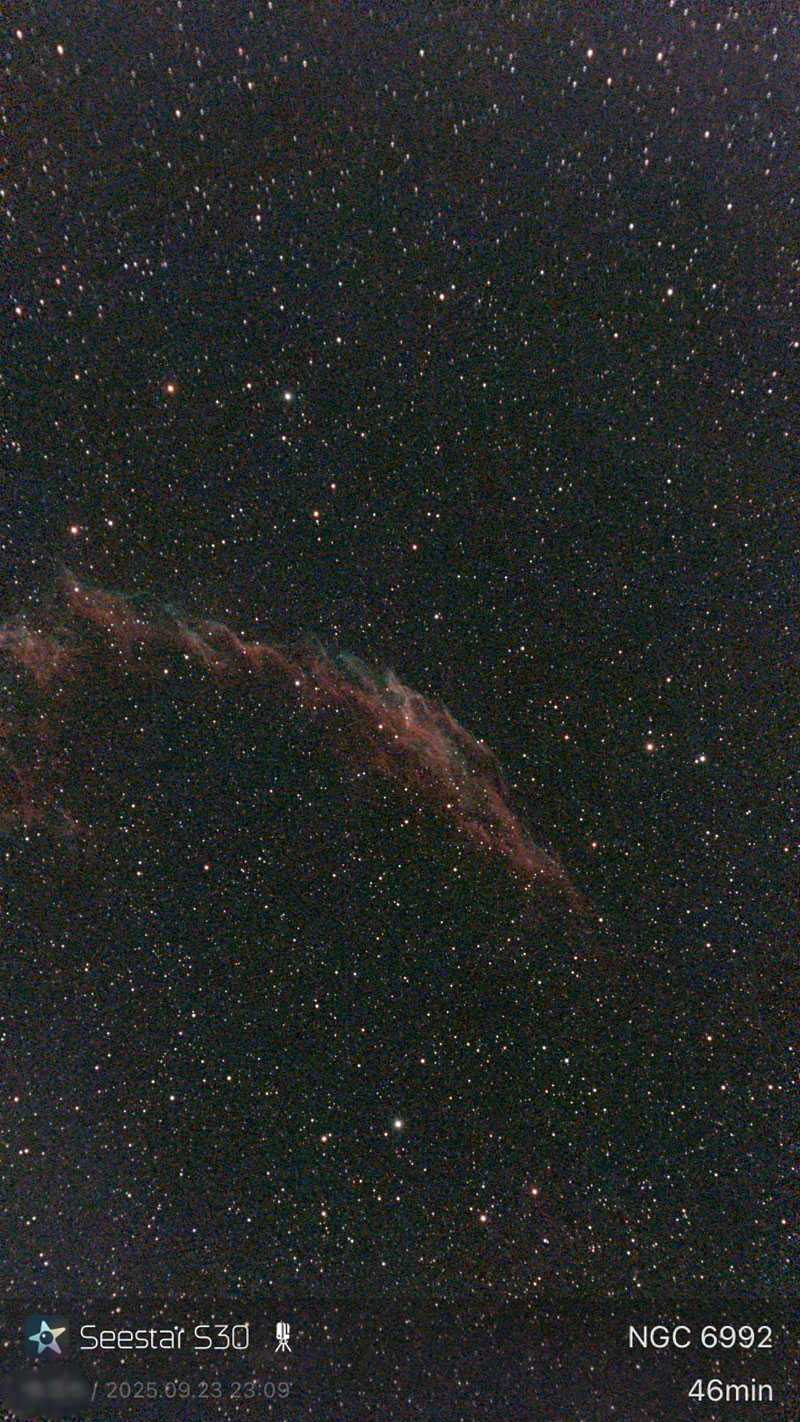 SeestarS30も長時間露出した方がきれいに写せるようですが、でも一眼カメラで写した場合のようにノイズがグンっと減る訳でもないようですので、ノーマルモードにて短時間で写したカットに自動画像補正を掛けた方がS30の使い方としては合っているかなと思うところが個人的な感想です。