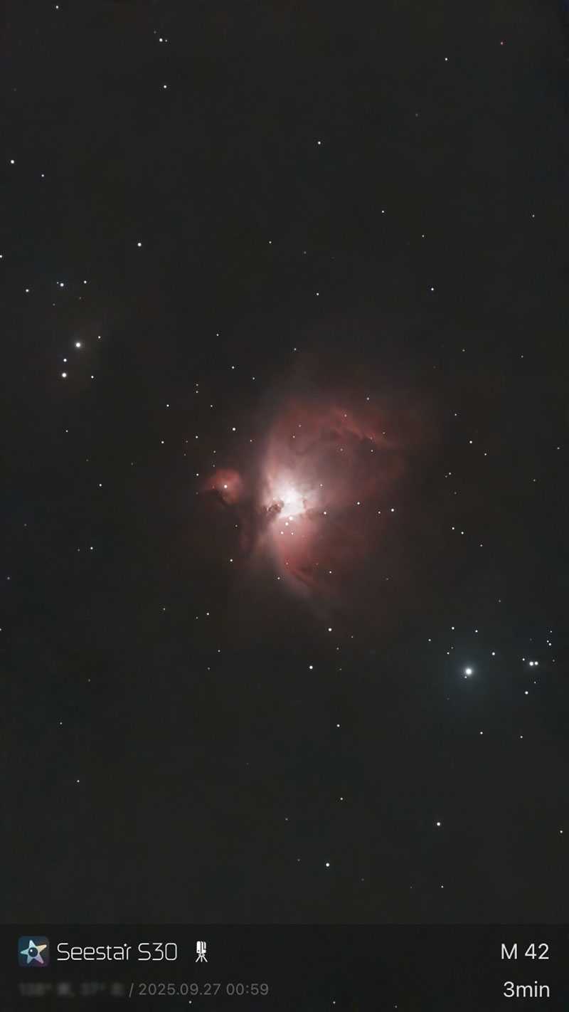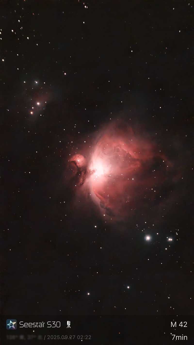 ↑そして高度も上がってきたころにプランにて自動で写したM42。