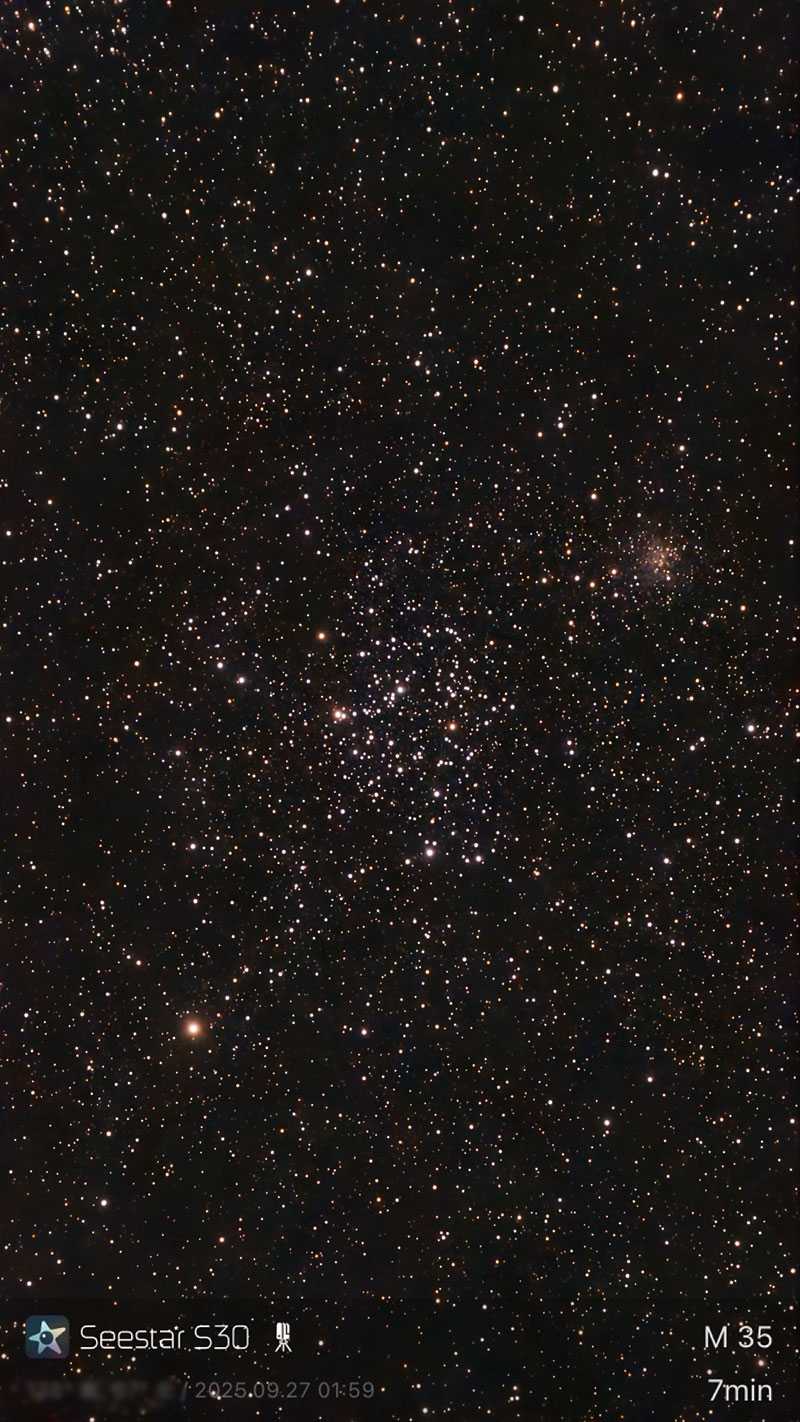 ↑2度目のプラン撮影の最後に写したふたご座にあるM35という散開星団。