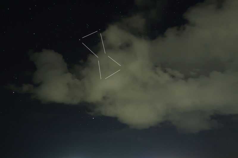 ↑空には雲も出ていましたがちょうど北斗七星の方向は良く晴れていました♪(タイミングよくISS国際宇宙ステーションが通りすぎました)。