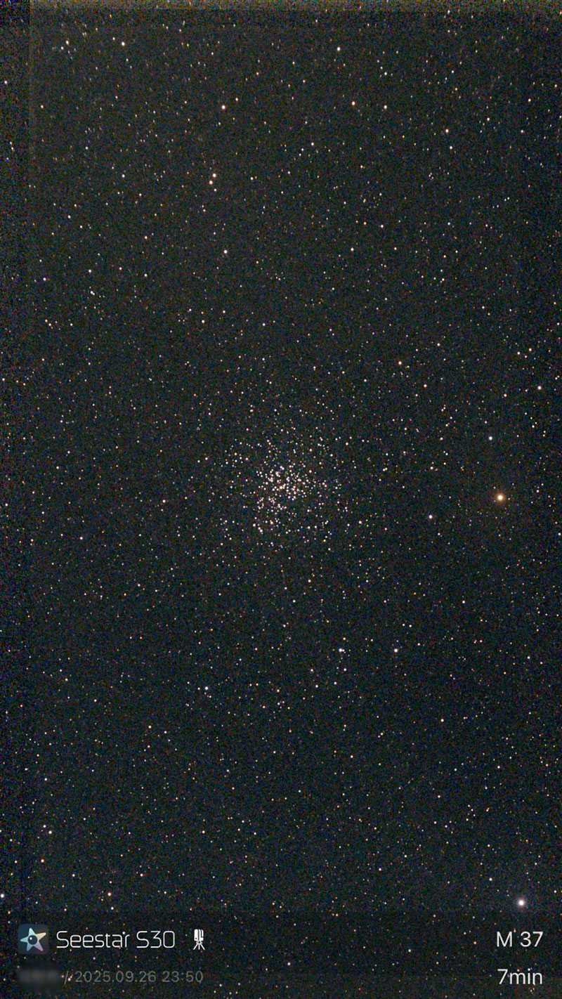 ↑オリオン座が高くなる前に先に天高く昇っていたぎょしゃ座にあるM37という散開星団(写したままの写真です)。