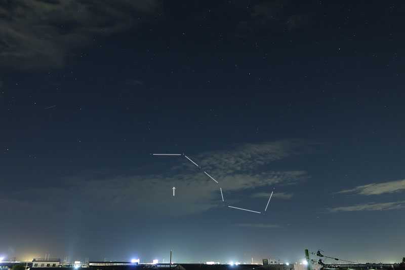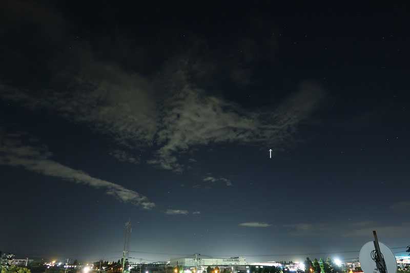 尾は左上に伸びているようですが、撮影現場からではスワン彗星は20万人規模の地方都市の花火で有名な長岡市というところの上空に出ていましたので、その街明かりもあり淡い尾は写らなかったようです。