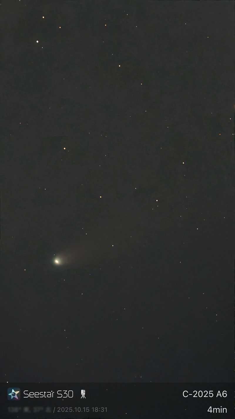今回もスマート望遠鏡と双眼鏡と、星空も写せるコンデジのG7Xの管理人的お手軽三種の神器を持って屋根に上がり、スマート望遠鏡のS30の自動導入を信じてまずはスワン彗星を写してみました。