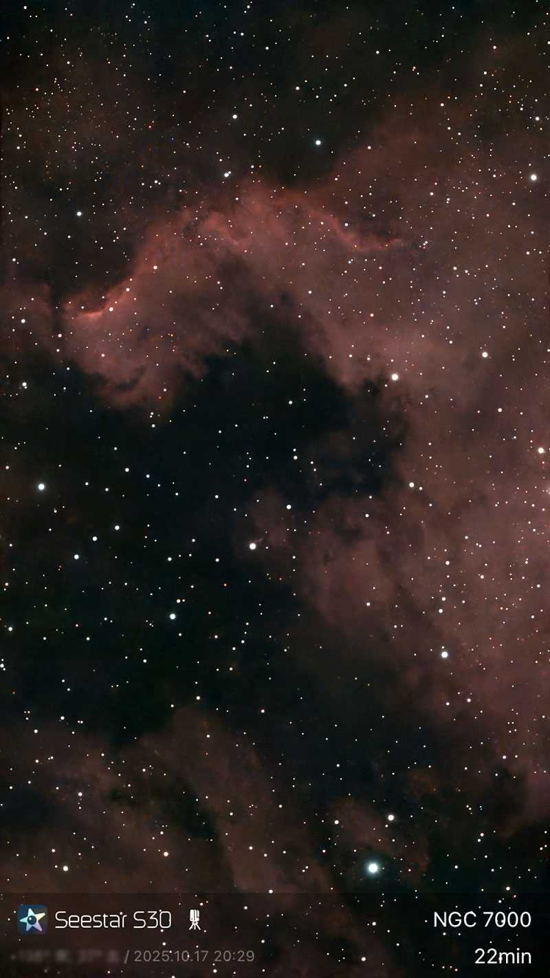 ↑まずは頭の真上付近に出ていた北アメリカ星雲。
