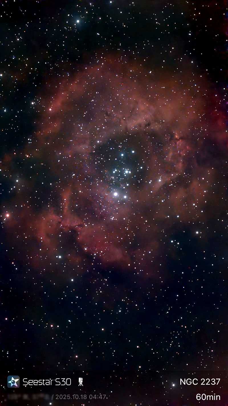 ↑そして物干し場からでは建物に隠れて写せるかどうかわかりませんでしたが、ダメもとで操作してみたらモノノミゴトに導入出来たバラ星雲というもの。