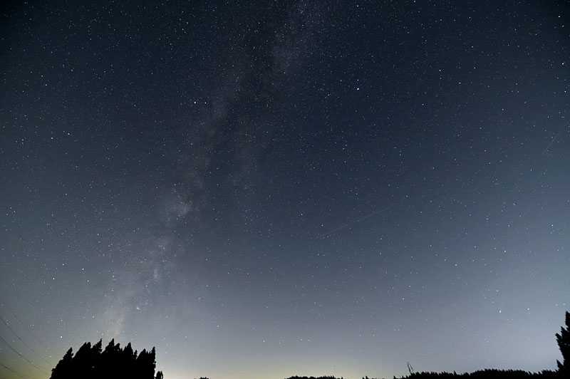 2つの彗星が飛んでいる天の川付近と西方向は現場から見渡す限り一番街明かりの影響を受けていました(-.-)。
