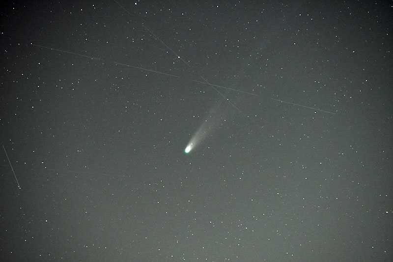 これを見ると尾が写野の外にも伸びていたようです。とにもかくにも300mmでレモン彗星を写したくて、カメラの中に入ったらシャッターを押しまくっていたので、もう少し冷静になって尾が伸びている方向に広く取るべきでした(-_-;ゞ。