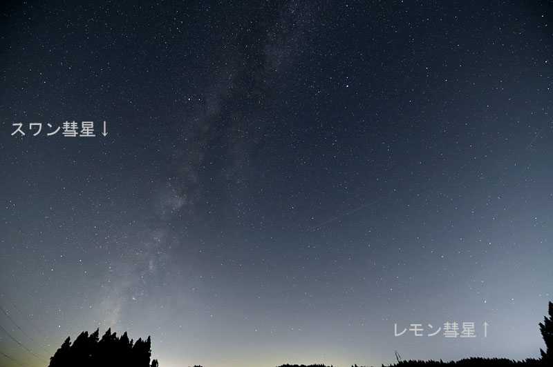 …なのですが、右下のレモン彗星はその姿も判ると思いますが左上のスワン彗星は判りませんよね^^;。