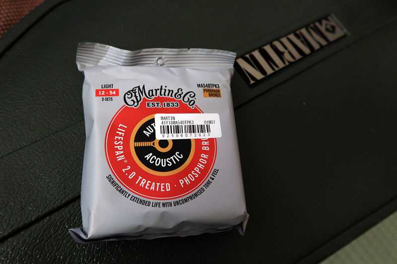 忘備録です。ギターの弦を替えました。このギターは8月の末にリペアに出していたもの。その時に新品の弦が張られて帰ってきて、それは今でも良い音で鳴っているしすげぇ弾き易くて交換するにはもったいなかったのですが、でも管理人がずーっと使ってきていた弦とは違うようで、やっぱりいつも使っていた弦で弾いてみたくなったんです。リペア時にギターの整備もして頂けていたはずですので今回は弦のみ交換することにしました。↑これが最近管理人が使っている弦で、martinのフォスファーブロンズライトゲージのライフスパンというものの3セットバック。↑封を切ると紙袋に入った弦が1セットずつ揃えられて3セット入っています。ちょっとお高い代わりに良い音が長く続くとのことで、実際に普通の弦は3か月程度で交換してきたところにこの弦を使い始めてからは(弦が切れない限り)5か月くらい交換しないこともあり、そうすると3セット目を使うのは1年後以降と言うことになり紙袋では錆も心配なので1セットずつ買うようにしていたのですが、1セットでは2200円くらいするところにちょうど特売でポイントが15%♪くらいついて大変お買い得だったので3パックで買ってしまいました、管理人はカメラの防湿庫も持っているのでその中に仕舞っておけば(多分)錆の心配も無くなりますしね。↑いつどこでも交換できるようにと、スーパーでバラのキュウリとかを買った時に入れていたポリ袋の中におせんべいに付いていた乾燥材と一緒に1セットいれてさらに2重にして持ち歩くことにして、もう1セットは防湿庫に仕舞うことにしました。↑管理人は最近はマーチン巻きをしていたのでそれに合わせてリペア屋さんもマーチン巻きで渡してくれました。この辺はありがたい心遣いですね。↑弦を1本外しては新しい弦を1本張ってゆきました。ちなみに管理人はもう20年+α年ギターの弦を交換してきていますが、弦を緩めるときは今でもその弦を鳴らしてちゃんと音が下がるか確認するようにしています。弦を緩めているつもりが逆に張っていて、張力に負けて弦がバシっと切れて危ないとは聞く話です。↑リペア屋さんが張ってくれた弦はボールエンドの所がちゃんと折り曲げられていました。これは弦の先を折り曲げることにより弦がギターの板に密着するようになり音が良くなる効果が期待できるのだとかなんとか。これも細かな所ですが職人さんらしさを感じます。↑管理人も弦を張る時は先を折るようにしております。2枚の写真を見比べて頂くと、リペア屋さんのものはリングが見えていますが管理人はリングの穴が見えないように折り曲げています。これはギターを弾かない時は弦を緩めるか緩めないかの論争と一緒で、リングが見えるように折るか見えないように折るかは、調べれば調べるほどどちらも正しいと出てきてどれを信じればいいのか迷ってしまいます。リペア屋さんもリングが見えるように折ると説明してくれましたが、管理人はもうずーーーっとリングが見えない側で折っていて、それで不具合も出ていないのでこれまでと同じ折り方を選ばせて頂きました。↑写真が暗くてわかりづらいですが、弦を押さえるエンドピンの穴は今までよりもきつく感じました。気のせいかもしれませんがリペア屋さんがナイショで手直ししてくれていたのかもしれません。↑今回もマーチン巻きでペグに巻いておきました。↑そして30分程度で張り替えました。してその音は…、やっぱり弦が違っていたためか管理人のギターの元の音が戻ってきたように感じました。リペア屋さんが張ってくれた弦が悪いという訳ではありませんが、やっぱり使い慣れた弦でないと良し悪しは比べづらいですね。ちなみに弦を替えたら弾きづらくなりました。ひょっとすると1つ細めの弾き易いカスタムライトケージで納品されていたからかもしれませんが、それでもリペアに出す前よりは弾き易く感じました。また、弦を使い慣れてきたものに替えたことにより見えてきたところも出てきました。しぱらく様子を見ようと思います。↑これがリペア屋さんが張ってくれていた弦。ボールエンド(リングの部分)が色分けされているので、ダダリオという世の中で一番売れている(多分)間違いのない弦が張られていたようです。この弦は弾き易かったですし音も良かったのでこれからの弦としてもいいのですが、やっぱり管理人は意地でもマーチンのmonoを使いたいところです^^;。