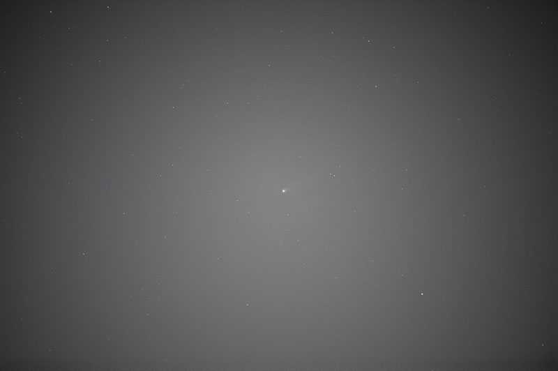 現在夕方の夜空に2つの明るい彗星が来ていますが、それを撮りに行ってきました。名前はスワン彗星とレモン彗星と言いますが、スワン彗星は人工衛星に積まれているSWANという観測機器により発見されて、レモン彗星はアメリカのレモン天文台にて発見されたのでこのような名前が付いているようです。当地は最近雨続きでしたが、先週に発表されていた今週(ややこしい(-_-;))の週間天気予報によると、今週は月曜から雨or曇りで昨日の23日になって晴れが見込めると出ていて、モノノミゴトにその通りになりました。管理人はその23日に向けて先週から予定を含めて撮影の準備をしていたのですが、そんなところにありがたいことに星仲間より一緒に写したいとの連絡を頂き、18時に待ち合わせをして昔に星を写す場所として使っていた山の上に行ってみました。前もって天体シミュレーションソフトのステラナビゲーターで23日の彗星の位置を確認すると、スワン彗星は22時頃まで写せそうなところに明るいレモン彗星は山や木を考えると19時には写せなくなりそう。現場に着いてとにかく現場の試写をすると…↓↑明るいっ(-_-;)。2つの彗星が飛んでいる天の川付近と西方向は現場から見渡す限り一番街明かりの影響を受けていました(-.-)。…っかしぃなぁ、前はもっと暗かったはずですが、家から距離があるので久しくここへは来なくなっていたのでその間に環境も変わってしまったのでしょうかね。でも、それにしても頭の真上付近の天の川の見え方が薄かったので、ひょっとすると全体的にモヤが掛かっていたのかもしれません。とは言うもののこれから場所を変更する時間はありませんでしたので、SXP赤道儀にD500とD780の2台を載せて、D500には70-200mmFLを着けて、D780では15-30mmの15mmで2つの彗星を1枚に写す設定で撮影を始めました。↑300mm相当で写したレモン彗星。写したままの大きさです。↑トリミングで大きくして、尾が判るように強めの画像処理をしてみました。これを見ると尾が写野の外にも伸びていたようです。とにもかくにも300mmでレモン彗星を写したくて、カメラの中に入ったらシャッターを押しまくっていたので、もう少し冷静になって尾が伸びている方向に広く取るべきでした(-_-;ゞ。でも機械が勝手に写してくれるスマート望遠鏡ではなくて、自分で彗星も導入して写していたのでこれで満足です♪(写っている線状のものは人工衛星の軌跡ね)。↑レモン彗星はカメラのライブビューのモニターでも姿が判りましたが、スワン彗星はどこを飛んでいるかわかりませんでしたので、写し外さないようにレモン彗星をギリ右下に写して左上を広く写してみました。↑上の写真と同じものですが、モノノミゴトに2つの彗星を1枚に写すことが出来ました。…なのですが、右下のレモン彗星はその姿も判ると思いますが左上のスワン彗星は判りませんよね^^;。↑まずはレモン彗星を等倍で切り出してみました。こちらは尾もちゃんと写っています。↑そしてこちらがスワン彗星。ほぼ真ん中の少しボワっとした星のようなものがスワン彗星になります。今回も双眼鏡でもどこにあるかわからず、写真でも尾は写っていませんでした(左上に伸びているはずです)。思えば1996年には大彗星の百武彗星が写せて翌1997年には今度はヘールボッブ彗星がまた明るくやってきて、2年連続で大彗星が写せたと喜んでいましたが、今回はそこまで明るくなくても2つの彗星を1枚に収めることが出来ました。今度は彗星と流れ星でも一緒に写してみたいところです、でも人工衛星はもう要りませんが(-_-)。