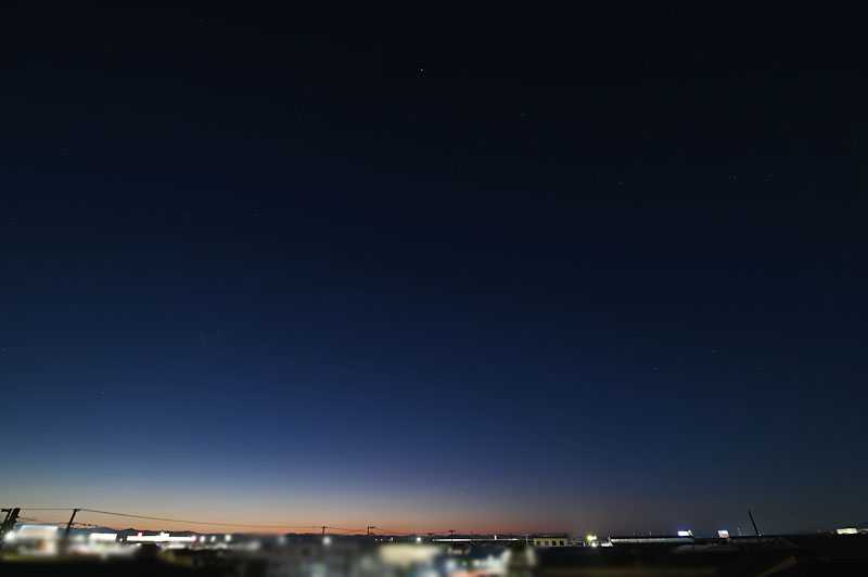夕方に窓からきれいな夕焼けが見れました。↑屋根に上がると雲一つない夕焼けでした。↑東の空には満月前の明るい月が出ていました(明日はスーパームーンですよ♪)。↑空全体が写せる全周魚眼レンズで写してみても雲が1つも写りませんでした。こんな空で月が出ていなければ山奥まで行って星空の写真を撮りたいところですが、月明かりがあっては出かける気にもなれません。ですが管理人にはスマート望遠鏡のS30があります♪。S30なら街中から写してもきれいに写せますので、月明かりがあっても写せるのではと物干し場からではなくて屋根から写してみることにしました。さすがに高度は低くなっていますが、夕方ならまだレモン彗星が昇っていますのでまずはそれを写してみることにしました。いつものように屋根にS30を置いてアプリで操作すると、アップデートがあるとの文字が出ていました。レモン彗星が写せる余裕は30分くらいしか無かったので早く撮影を始めたかったのですが、まだ薄明が終わっていない時間でしたしアップデートすると画質がさらに良くなるカモ知れないので、どうせ時間がかかっても5分くらいだろうとアップデートを実行したのですが、これが失敗に繋がってしまいました(-.-)。予想通りアップデートは5分程度で終わったのですが、そこから改めてS30を操作してレモン彗星を導入すると何時になっても画面に彗星が浮かび上がらない(・・?。…っかしぃなぁ、通常なら画質の補正が始まったりオートフォーカスをしていますとか初期設定が始まるはずですがそれも始まらない(-_-;)。レモン彗星はS30の自動導入に頼るつもりでどこにあるか調べていなくて(^^ゞ、果たしてちゃんとレモン彗星に向いているかどうかわからなかったので、では夜空に輝いていたベガ(おり姫)に向けてみると全然別の方向を向いてしまいました(-_-;)。なのでアプリの微調整ではなくて手で直接S30本体をズラすという荒業を使ってレンズをベガの方向へ向けても画面には星が写ってきませんでした。そんなところに画面をよ~く見るとベガとは違う暗い星が超ピントがズレている状態で写っていました。んっ(・・?、ひょっとするとアップデートでピント設定が初期化されたのか、はたまた何かのエラーでピントが合ず、それで星の位置が認識できなくて天体を自動で導入できなくなっていたのではと想像してみました。その間にもどんどん彗星は沈んでゆくので早く調整しなくてはならず、そんなところに月なら明るいのでピンボケでも導入できるのではと彗星とは反対側の空に出ていた月へ向けてみるとやっぱり全然別の方向を向いて止まりました。これも手でS30を直接ズラして月を画面に入れてみると、案の定えらいピントがボケた月が画面に写し出されましたが、月が明るいだけに今度はS30が月と認識してくれました。導入後にはS30もピントがおかしいと認識したようでジージーと音を立てながらオートフォーカスが始まって、何度もピントを行き来させて3分くらいと結構時間をかけてやっとはっきりとした月が浮かび上がってきました。ホっ(-.-)。今日の目的はとにかくレモン彗星を写すこと。これで自動導入が出来なければ諦めるつもりで再びレモン彗星に向けてみると、モノノミゴトに彗星が浮かび上がってきました\(-o-)/。アップデートが原因かどうかは判りませんが、時間に余裕がない時はそれまでのアプリに不具合が無ければ念のためアップデートは後回しにした方が良さそうですね(-_-;ゞ。↑そして写せたのがこれ。自動導入では彗星の頭(核)を中心にして写し始めますので、微調整で尾が長く写るように修正して写し直しています(アプリの自動補正使用)。位置的に月とは反対側とはいえ月明かりに加えて街明かりもある中で、さらにもうすぐ山に掛かってしまうくらい高度も低くなっていたにもかかわらずちゃんと尾も写してくれました。尚、現場からでは空が明るくて肉眼では彗星を確認をしようとも思いませんでした。↑レモン彗星が写せたので、スワン彗星はどうかな…と向けてみるとこちらも明るい空の中にしっかりと写してくれました(自動補正使用)。ちなみにレンズはえらい高い所を向いていました。彗星は写せたのでこれで良しとして、月を写してみました。↑まずは1枚撮り(明るさ補正)。仲秋の名月を写した時は1枚撮りでは自動画像補正(←修正できない補正)が強すぎて月面がイガイガしていましたがそれと比べるとこちらの方は滑らかに写っています(・・?。屋根から下りてきてからわかったのですが、どうやらアップデートでこの月のイガイガ補正を修正したようです。こりゃアップデートをしといてやっぱり良かったかな^^;。↑動画で10秒写したものをアプリでスタック処理してみました(明るさ補正)。左下に「スタック」と表示されていますが、これまではスタックしてもそれが1枚撮りなのかスタックした画像なのか判断し辛かったところに、今回のアップデートでちゃんと表示さ