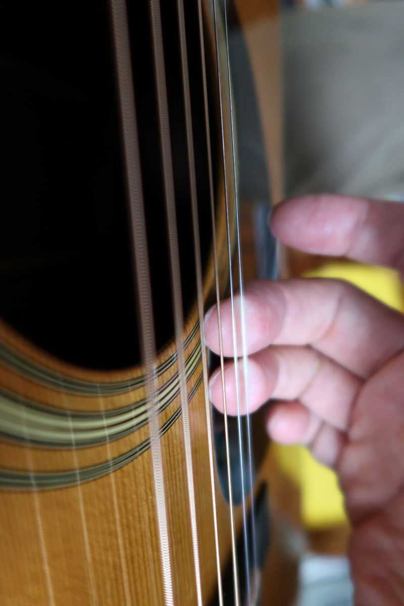 管理人はギターを弾いた後は毎回弦を緩めるようにしています。理由はその方がギターには良い"らしい"から。昔は弦を緩める暇も無いくらい毎日弾いていたのですが、最近は一身上の都合で1週間に1回か、良くて2~3日に1回弾ければいい程度になっています、毎日弾かないと指が鈍ることは実感しているのですけどね(-.-)。弦はペグ(弦を巻くつまみ)を1回転半から2回転半くらい緩めているのですが、モノの本によると弦がダラダラになるまで緩めた方がいいと書かれていることもあります。この、弦を緩める、緩めないも調べるとどちらも正しいと出てくるので答えは永遠の謎ですが、とりあえず現在は緩める派の方が半数を越えているようですので(多分)管理人もそれに従っているという次第です。ホントはギターを弾く前に毎回毎回調弦(弦の音程を合わせる事)するのも面倒くせぇのですがギターの事を思えば仕方ないですね。↑その緩めていた弦を調弦する時ですが、管理人は毎回写真のように右指をギターと弦の間に入れて弦を巻きあげています。理由はちゃんと弦が張られていることを確認するためなのですが、こうしておくと弦を張ってゆくと弦の張力によりネックが曲がるために弦が指に強く当たってくることが判るんです。それを確認するために指を入れてはいるものの、実際に弦が張られてギターと弦の間隔が狭まってくるところを実感すると、このまま弦がバシっと切れないか、はたまた弦の張力に負けてネックが折れないか^^;とすげぇ恐怖を感じるんです。調弦は年に何十回も行っていますし、これまでも調弦で弦を張ってゆく時に弦が切れたことはありませんし(弦を緩めている時に切れたことはあります)、ギターの工場では弦を一気に張ってゆきますが、それでネックが折れたなんて話も聞いたことはないので弦を合わせていてネックが折れることなんてまず起こらないのですが、この恐怖感にはなかなか慣れないものですね。この恐怖に耐えながら今日も弦を張ってギターを弾いております♪。