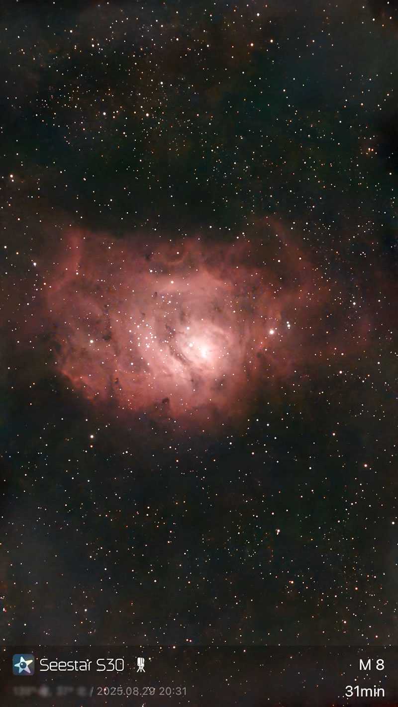 この夏に買っていたスマート望遠鏡のSeestarのS30ですが、自分なりに何とか使えるようになってきたようです、多分。買ったばかりのころはホントにS30を地面に置いてスマホで操作するだけで天体を勝手に導入してくれてそれを写すことにたまげて(゜o゜)いましたが、その後に自動でノイズを取れることやさすがに大きく写すことは無理としても月も太陽も写せて、望遠鏡に付随するオモチャとして使うつもりが今では立派な天体写真機の立ち位置となっています。そんなところに先日写していた物やこれまで写していたものに対して改めてアプリでの自動ノイズ除去を施して、さらに管理人なりに色合いを含めた画像処理をしてみました。それらを以下にズラズラ~っと並べてみました。↑管理人がこのような星雲や星団の写真を写す場合は今でも望遠レンズを使っていて、それをトリミングで大きくして喜んでいるのですが、S30で写したものは総じていつかはこんな感じで写してみたい…と思っていたものに近い姿で写してくれていると思います。そりゃ管理人が勝手に天体写真の目標にさせて頂いているブロ友さんのホシミスト_3013さんが写されているものにはまだ程遠いですが、それでも半歩くらいは近づけたかなと思っています、と言っても管理人は何もせずS30が勝手に写してくれた結果ではありますが(^^ゞ。それとこれまではこのような写真を写す場合は、天気予報を見て良く晴れる日があればその日に向けて出かける準備をして山奥の周りが真っ暗なところまで出向いて写していたのですが、今回載せている写真は全て街明かりがある所から、さらに多少の雲がかかっていても写ればいいや…と写していたもの。それでもこれだけ写してくれて今ではそのことにたまげています。思えば天体写真もフイルムではなくてCCDで写されるようになってきたころに、東京の23区内のご自宅からまるで山奥で写したような星雲の写真を写される方が出てきて驚愕していたものですが、それが5ケタ万円出せば誰にでも写せる時代がやってきて、ではスマート望遠鏡での撮影が当たり前になっていくとしたら、その後は一体天体写真もどのように変わってゆくのか末恐ろしいところがあります。まぁかく言う管理人も昔は天体写真を1枚写すのにも1時間望遠鏡につきっきりで写していたところに最近ではデジカメになって短時間でも写せるようになり、さらに道具も良くなって機械任せで写していながら双眼鏡で空を眺められるようにもなっていたので、技術が発達することにはウェルカムなのですけどね^^;。