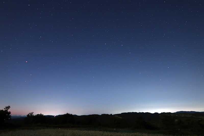 今日の早朝は晴れる可能性がありました。天気予報では3時は曇りで6時からは晴れると出ていましたが、一抹の期待に賭けて現在早朝の北東の空に出ているレモン彗星を写してみようと、3時に目覚ましを掛けて一度床に就きました。そしてベルに起こされて窓の外を見てみると思いっきり曇りっ(-_-;)。こりゃとても星空は望めそうもないので今回は彗星は諦めてまた寝ようと思いましたが、せっかく起きたことだし1時間くらいなら晴れ間を待つ覚悟で屋根に上がってみたら…↓↑モノノミゴトに彗星が出ているところ"だけ"晴れていました\(-o-)/。普段は写したい対象のところに"だけ"雲が流れてくることが多いのですが(-_-;)、今回は逆天体アルアルになってくれたようです。↑今朝のレモン彗星は北斗七星の右側の、矢印の少し上付近を飛んでいるはず。屋根には星が見れなかったとしてもスマート望遠鏡のS30と双眼鏡と、星空も写せるコンデジのG7Xを持って上がっていて、この雲がこれから下に下りてくるかも知れなかったのでとにもかくにも急いでS30を組んで…と言っても三脚を付けただけですが、彗星がどこを飛んでいるかの確認もせずにスマート望遠鏡の自動導入を信じていの一番(死語っ)でアプリに表示されていたレモン彗星をタップして撮影を始めました。↑するといつものように自動で初期設定を始めて、ちゃんと彗星が飛んでいるはずの方向を向いたと思ったら1枚目から彗星を写してくれました♪。管理人がカメラで彗星を写すとしたら、まずは広角レンズで彗星が飛んでいる付近を写してそれをモニターで確認して彗星を探して、それからその方向へ望遠レンズを向けて撮影を始めるのですが、S30はどこに彗星がいるのかもわからないまま導入してくれたので、やっぱりこの使い勝手はすげぇ良いですね。まずはこれから雲がかかってきたとしても証拠写真として残せるように1分で撮影をやめました。↑ちなみに窓を開けた時に見えていた空方向ですが、普段ならこんな空が見えているのであればわざわざ屋根に上がることはありません。今回は無理を承知で屋根まで上がった管理人を褒めてやりたいところです♪。↑雲は結局どんどん晴れていって、しまいには雲一つ無い星空が出ていました♪。こんな空であればオリオン大星雲や他にも写してみたい星雲がいっぱいあったのですが、それらは別の日でも来年になっても写せますがレモン彗星は今しか写せませんからね、グッとこらえてレモン彗星だけを写していました。↑これは撮影も最後の方で彗星の高度が高くなってから、薄明が始まるまで尾を写すために出来るだけ長めに写していたもの(自動補正を掛けています)。S30の自動導入は、彗星の場合は核を中心に導入するようでしたので、尾が長く写るように手動で位置を補正してあります。レモン彗星は写真のように現在尾が立派に伸びているようですが、3等星程度しか見れない街中からでは管理人の肉眼では見つけることはできませんでした。ただし双眼鏡ではボワっとした如何にもな彗星核として頭部は淡く見ることが出来ました。S30は自動で星の動きを追いかけてくれるので長く写していても星を点として写してくれますが、実は彗星は星とは違う動きをしているので普通に写すと彗星の頭の部分(核)が横に伸びて写る場合があります。↑その、彗星核が伸びないように写すか、はたまた長く露出して尾を濃く写すかは撮影される方の私感になるのですが、15日であれば機材にもよりますが、露出時間を3分程度にすればギリギリ彗星核のズレが気にならない程度に写せるようでした(自動画像補正しています)。↑参考でアプリの自動補正を掛けていないカットも載せておきます。レモン彗星はこれからさらに明るくなる予測で、本日(10月15日)辺りから11月上旬ころまで、夕方の北西から西方向でも見れるようになりますので、その姿も楽しみなところです。↑朝焼けの始まる頃には(結局2時間くらい屋根に居ました^^;)東の空に金星と春の星座であるしし座も昇ってきておりました。山の上が薄っすらと赤くなっているのが判るでしょうか。↑星空の世界では早朝ではもう春の星座が見えているんですね。早く春にならないかな^^;、その前に雪深い冬が待ち構えていますが(-_-;)。