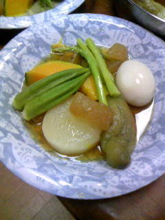 なすにおくら たまご 大根 アスパラ かぼちゃ です。