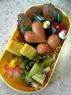 じぇしのまさんでしたっけ? お弁当の上下逆さまにしちゃったの。 私もやっちゃった。 どうもフタがうまく閉まらないと思ったら、ご飯のほうにおかずを詰めていた。 ご飯は下段だから、今日のおかずの表面はつぶれまくっているはず(汗) かわいくな~い(≧□≦) ハートのおめめのどきんちゃんポテト入れたのに…。