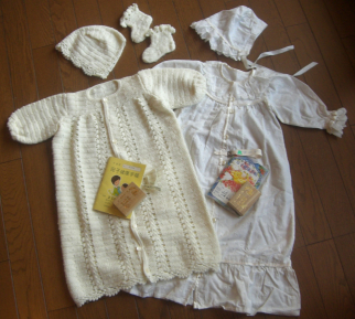 昨日紹介したバンカーズボックスにはこんな物も入っています。*退院とお宮参りに着せたベビードレス*母子手帳*へその緒*新生児のネームタグ(入院中に腕につけていた物)左はポコ太のもの。 冬に生まれたので毛糸で編みました。右はペコちゃんのもの。 夏に生まれたのでコットンで作りました。母子手帳にはその時の様子がイロイロと書いてあったので、改めて読んでみたら笑えるエピソードがたくさんでした。ああ、元気さえあればよかった日々。戻りた~い!でも、子育てする体力は残っていないのだった・・・。