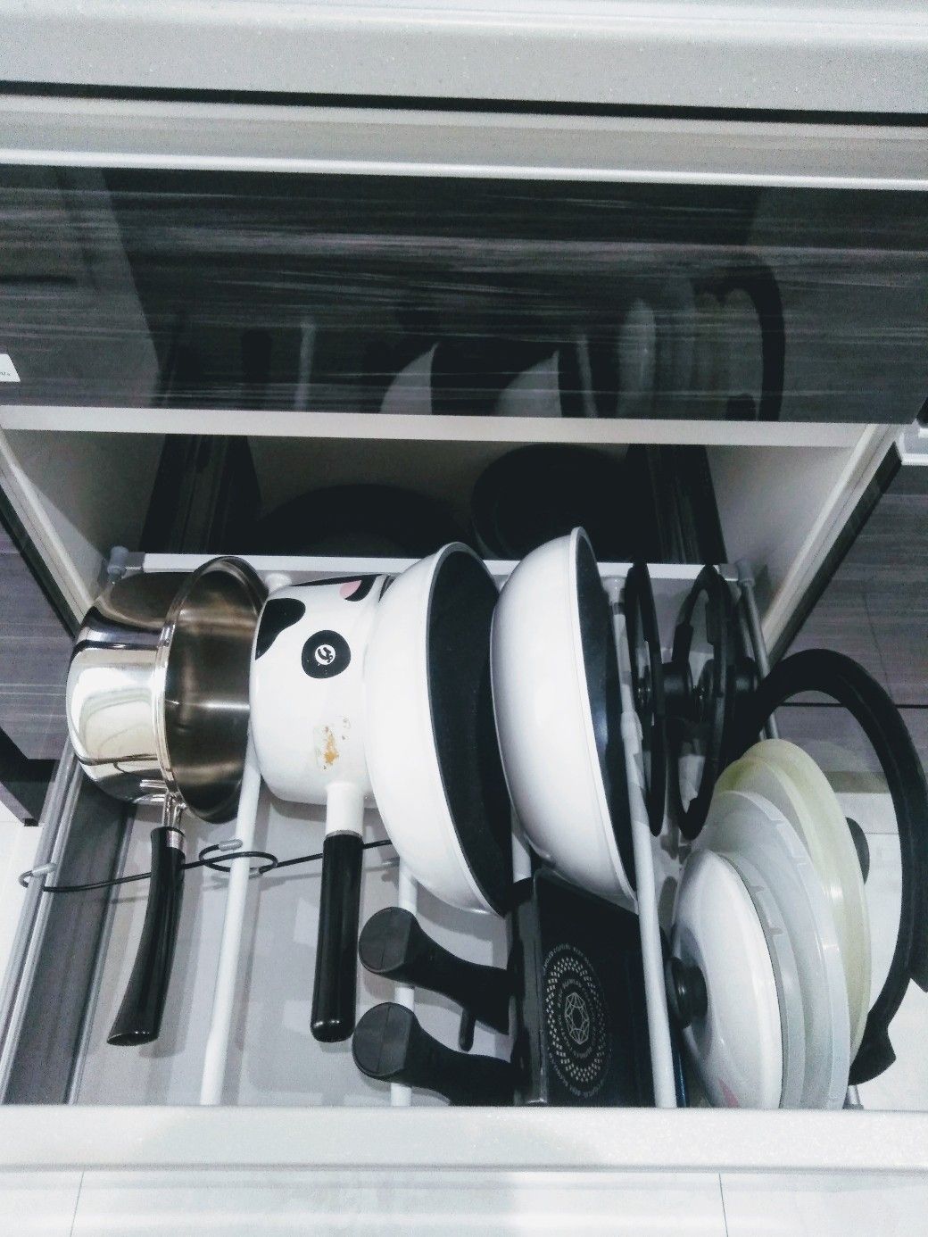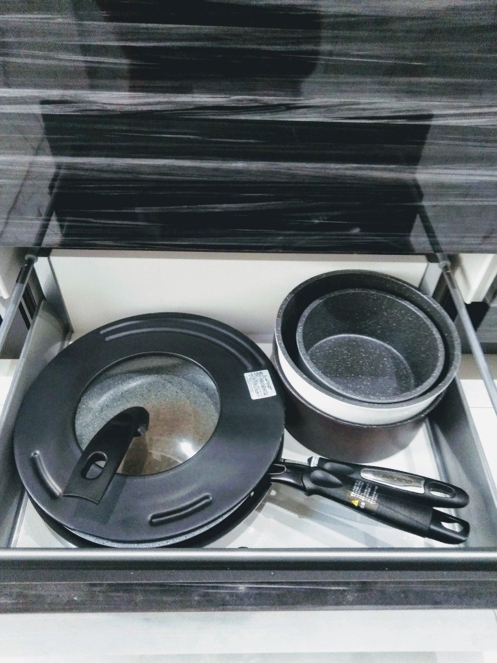 引っ越し以前から使っていたフライパンや、引っ越し祝で頂いたお鍋などサイズや使い勝手もバラバラ。