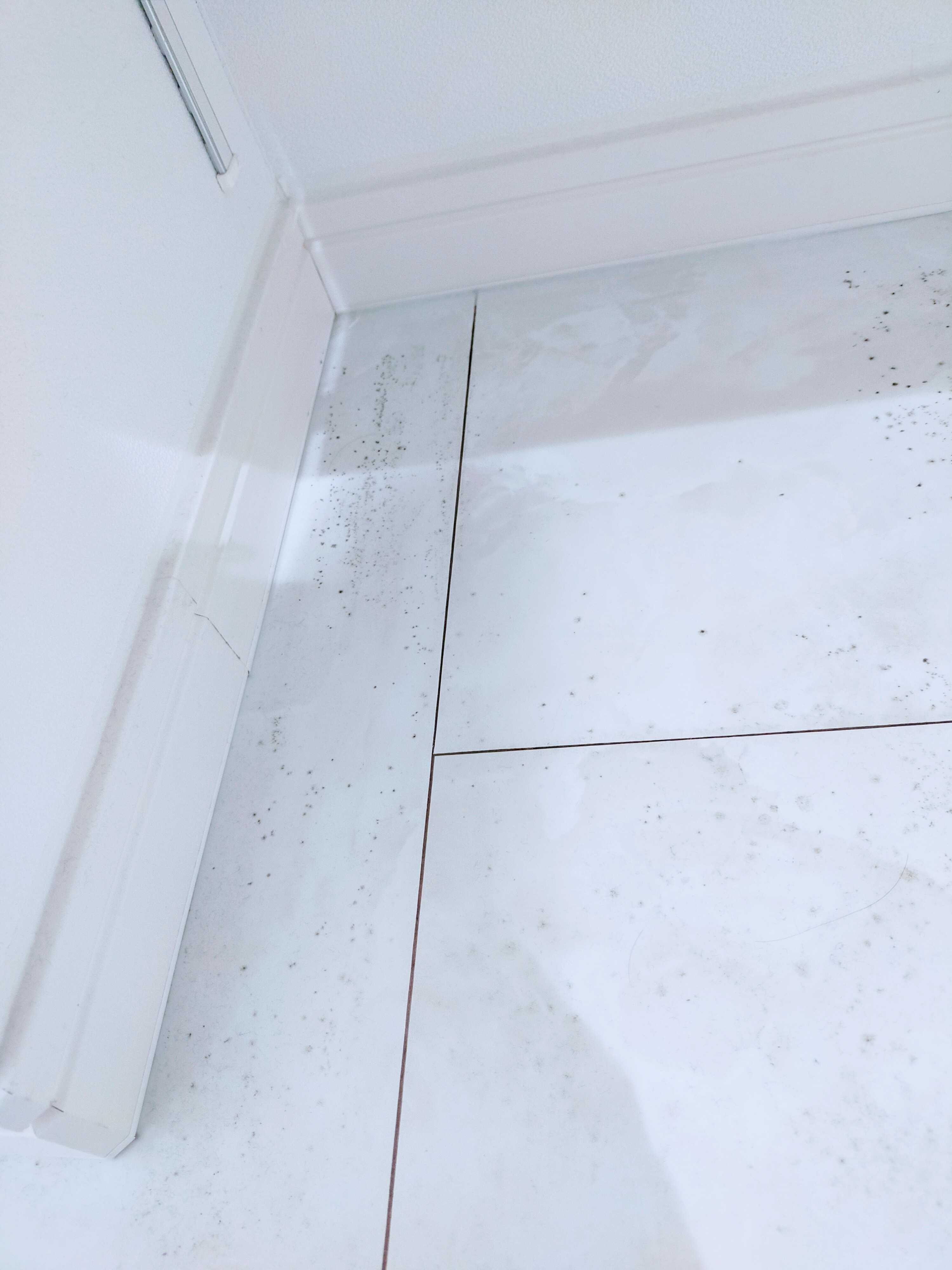 いつもなら、巾木までしっかり生えていたカビもテープを貼っていたので、巾木だけきれい。