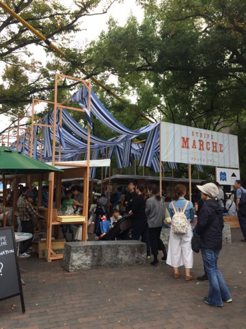 こんにちは~(^^)/がいちゃんです。休日に美味しいパン屋さんが集まるマルシェに行ってきました~♪天然酵母や自家製酵母、厳選素材を使った人気ベーカリーが集まるスペシャルマルシェこと、【ストライプマルシェ】です(*^^*)人気のイベントとあって、会場の石山公園はたくさんの人!!お店のテントもナチュラルでオシャレ(^^♪この場所に来るだけでも楽しくなります。期間限定でオープンしている O///RIVER CAFE も発見!10月のメニューは、おにぎり、豚汁、抹茶クリームと粒あんタルト、季節のジュースは梨でした。この日はお昼に行ったらすでにフードメニューは完売!とっても人気のようです。さて、お腹ペコペコのがいちゃんが購入したのは、倉敷の【ムッシュドムスタッシュ】さんです。お昼時なので、お惣菜パンが多めに。右上から時計まわりに、・溢れだすたまごのクラブサンド・カツサンド・ねぎ塩ドック・フレンチトースト・ミネストローネとベーコンチーズのパニーニ・黒毛和牛メンチカツバーガーお店の人気パンのたまごのクラブサンドは、こんがり焼かれたトーストにたっぷりたまご(^^♪子供も大好きな少し甘めのお味です。カツサンドのお肉は肉厚!!食べごたえたっぷりの一品です。パンに滲みたカツソースがたまりません。お腹も膨れてきたので、ほかの店舗さんも!こちらも倉敷のお店【Carino】さん。お店はモーニング、ランチ、ディナーも頂けるそうです。お店の人気商品!砂糖・卵・牛乳不使用のハチミツ食パンの「ハッチ」のハーフ、レーズンマフィン(^^♪ハッチはお持ち帰り用に。マフィンはデザートに。しっとり生地と、ほどよい甘さで美味しかった~♪もう一店舗(^^)/こちらはドリンクを提供してくれるお店。【THE COFFEE BAR】さん。瀬戸内市邑久の「キノシタショウテン」さんが展開するカフェで、岡山駅西口と岡山市北区大供に店舗があります(^^♪少し蒸し暑かったので、アイスコーヒーと、オレンジジュースとおやつにブラウニーを♪さっぱりしたドリンクと、濃厚チョコでお腹いっぱいに(*^^*)帰りにお散歩がてら期間限定で開催されている【ちいさなテロワール】を見に行きました。有名建築家3名と学生が共同で設計した3つの屋台によるプレミアムフードフェスです。屋台とは思えないアートな空間!こちらは、ジャングルジムのような屋台の中で調理&提供されていました。11月27日(日)までの土曜、日曜に開催されていて、岡山を代表する料理店が週替わりで、料理を提供してくれますよ(^^)/場所は、禁酒会館の横になります。禁酒会館の1階には、レトロな雰囲気の喫茶店がありますよ♪がいちゃんも一度行ってみたいな~と思ってます。ストライプマルシェは11月5日(土)、6日(日)にも開催されます♪是非、おでかけください(^^♪◇◇◇◇◇◇◇◇◇◇◇◇◇◇◇◇◇◇◇◇◇◇◇◇ 【ストライプマルシェ】 場所:石山公園 岡山市民会館横 日時:2016年11月5日(土)、6日(日) 10:00〜16:00アクセス:JR岡山駅から徒歩15分 路面電車東山行「城下駅」より徒歩3分 お問合せ:086-235-3337 株式会社ストライプインターナショナル ◇◇◇◇◇◇◇◇◇◇◇◇◇◇◇◇◇◇◇◇◇◇◇◇