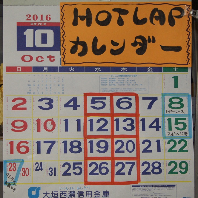 こんばんはー HOTLAPですー10月のカレンダー 見てくださいー (*^_^*)8日 いつもの HOTLAPナイターレースがございますーカテゴリーは 4つ タミチャレZERO 7500rpm1/12 7500rpm1/10と ミニクラス です 夜 7時スタート夕方5時までは 通常営業(*^_^*)遊びにきてね15日 土曜日 は スポンジ祭が ございますー1/12モデファイと 1/12ストックのイベントオープンより 1/12マシンのお祭り 6時レースイベントスタートメイン数で 予選回数が 2~3回になりますので ご了承くださいね終了予定は 10時台 ご参加 お気軽に宜しくお願い致します(^o^)丿23日 日曜日 全国統一タミチャレがございますーカテゴリーは 6つZERO タミチャレGT FF F1 ミニクラスそしてオリジナルの タミチャレZEROルーキー の 6つ今年最後の 代表権付きタミチャレ 早始まりのイベント 9時コースオープン 11時半レーススタート4時には終了予定 お子様も安心な時間帯ね(*^^)vよろしくお願いいたします(^v^)では 10月 よろしくねHOTLAPよくあるご質問コーナー質問 カーペットはいつまでですか?回答 HOTLAPはー カーペットコースでいきますー詳細はスタッフまでよろしくお願いいたします。